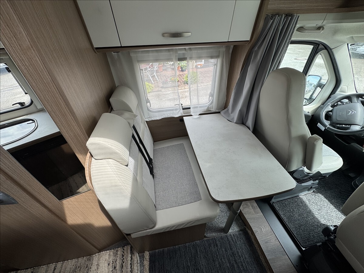 První majitel, Zadní příčná postel, všechna okna se zatemněním a moskytiérou, dveřní moskytiéra, izolovaná a vyhřívaná odpadní nádrž, střešní ventilátor MaxxFan, lednice 12/230V/plyn, nosič na 3 kola, DuoControl, druhé dveře do garáže, velká šatní skříň v obytném prostoru, topení Truma Combi, Solární panel 190W s regulátorem, bezpečnostní zámky, .... Celková délka: 595cm, výška: 274cm a šířka: 214cm .... Celková hmotnost: 3500kg, provozní: 2540kg ... Vozidlo u nás prodané jako nové a po celou dobu servisované ... V záruce na těsnost