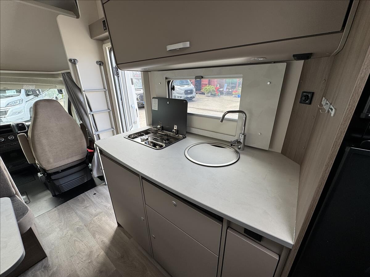 Leasing možný, Možné financování vozidla., Zadní příčná postel + spaní v alkovně + rozkládací sezení na dětské dvojlůžko, velká lednice s odděleným mrazákem 12/230V/plyn, druhé dveře do garáže, všechna okna se zatemněním a moskytiérou, dveřní moskytiéra, dva bezpečnostní pásy proti směru jízdy, přídavné zadní pásy, příprava pro zadní kameru, 2DIN rádio Alpine se zobrazením kamery a zrcadlením telefonu, DuoControl se systém Crash senzor, markýza ...Celková hmotnost 3500kg ... VOZIDLO SKLADEM ... IHNED K ODBĚRU