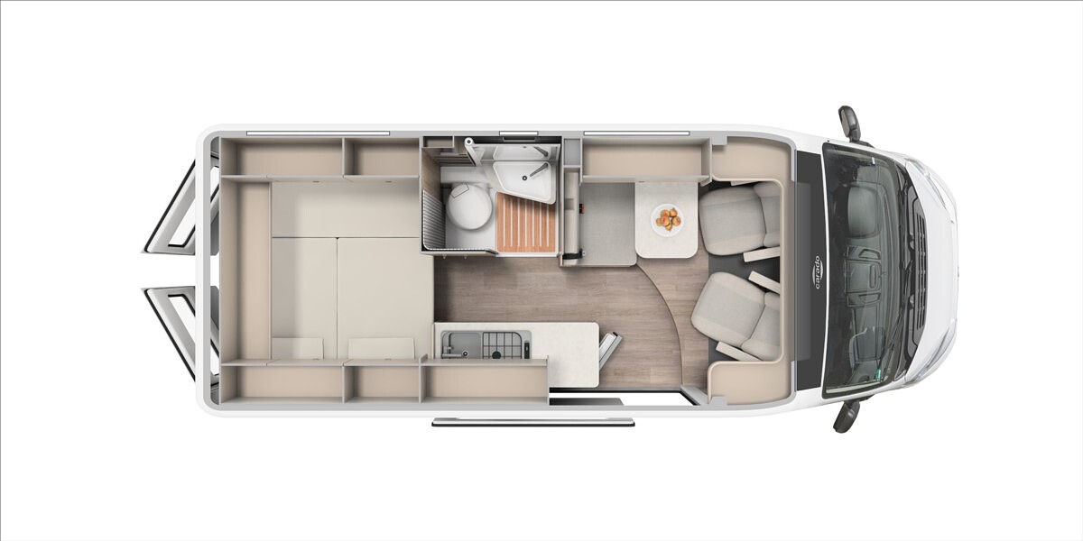 První majitel, Leasing možný, Možné financování vozidla., Zadní příčná postel + sezení upravitelné na lůžko, kabelová příprava pro zadní kameru, dřevěný rošt v koupelně, zatemnění kabiny REMIS, všechna okna se zatemněním a moskytiérou, dveřní moskytiéra, palivová nádrž 90l, lednice s mrazákem, izolovaná a vyhřívaná odpadní nádrž, elektronická ruční brzda, topení TRUMA Combi 6E, palivová nádrž 90L, bezpečnostní rámová okna, ... Celková hmotnost: 3300kg ... Spaní pro 2/3 osoby, jízda pro 4 osoby.... VOZIDLO VE VÝROBĚ - ZMĚNA KONFIGURACE MOŽNÁ.... TERMÍN DODÁNÍ: ZAČÁTEK ROKU 2026