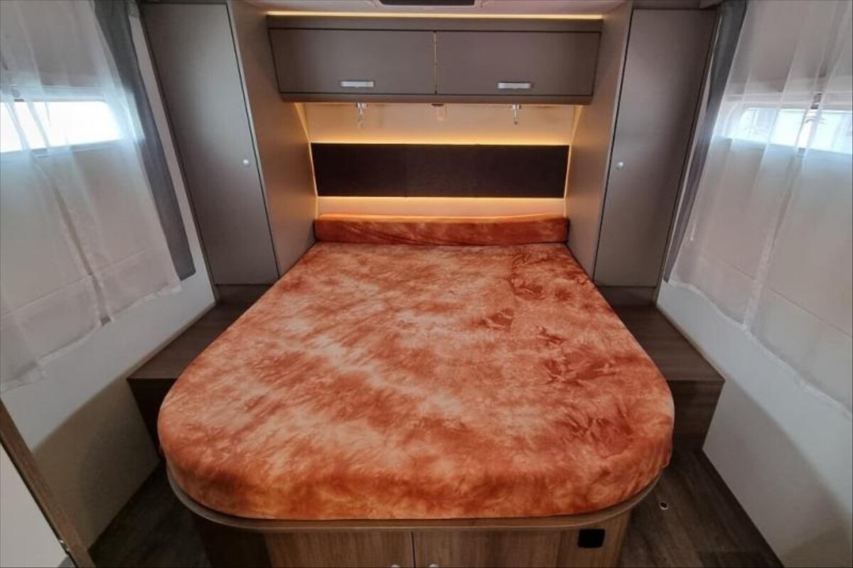 První majitel, Zadní královská postel + spouštěcí lůžko, nosič 4 kol, topení Truma Combi 6E, velká lednice s odděleným mrazákem 12/230V/plyn, zatemňovací systém v kabině, všechna okna se zatemněním a moskytiérou, bezpečnostní rámová okna, DuoControl se szstémem Crash senzor, nástavbová klimatizace, 11' rádio ALPINE se zobrazením zadní kamery a zrcadlení telefonu, měnič napětí 600W, trezor, izolovaná a vyhřívaná odpadní nádrž .... Celková hmotnost 3500kg, provozní: 3084kg, celková délka: 737cm, výška: 293cm, šířka: 232cm --- spaní i jízda pro 4 osoby