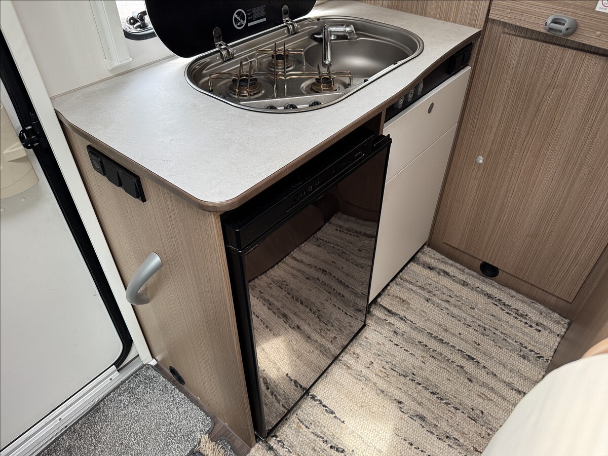 První majitel, Zadní příčná postel, všechna okna se zatemněním a moskytiérou, dveřní moskytiéra, izolovaná a vyhřívaná odpadní nádrž, střešní ventilátor MaxxFan, lednice 12/230V/plyn, nosič na 3 kola, DuoControl, druhé dveře do garáže, velká šatní skříň v obytném prostoru, topení Truma Combi, Solární panel 190W s regulátorem, bezpečnostní zámky, .... Celková délka: 595cm, výška: 274cm a šířka: 214cm .... Celková hmotnost: 3500kg, provozní: 2540kg ... Vozidlo u nás prodané jako nové a po celou dobu servisované ... V záruce na těsnost
