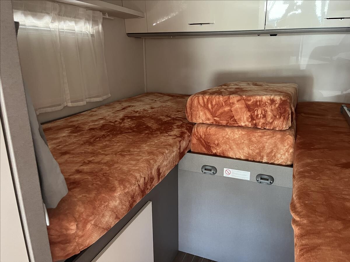 První majitel, Leasing možný, Možné financování vozidla., Zadní podélné postele s výsuvným roštem + spouštěcí postel, nástavbová klimatizace Sinclair, nosič 4 kol, měnič napětí + nástavbová baterie LiFePo, televize + DVBT anténa, tažné zařízení 2000/750kg, všechna okna se zatemněním a moskytiérou, velká lednice s mrazákem 12/230V/plyn, DuoControl, izolovaná a vyhřívaná odpadní nádrž, topení Truma Combi 6, bezpečnostní schránka, kávovar ... Celková hmotnost: 3500kg, provozní: 2887kg ... Celková délka: 699cm, výška: 287cm, šířka: 232cm.... jízda pro 4 osoby, spaní pro 4/5 osob