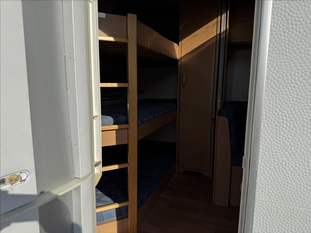 Možné financování vozidla., Francouzská postel, 3x palanda, rozkládací sezení do U, topení Truma + boiler, lednice 12/230/plyn, samostané umyvadlo, koupelna s WC a sprchou ..... Celková hmotnost 1500kg, provozní: 1200kg
