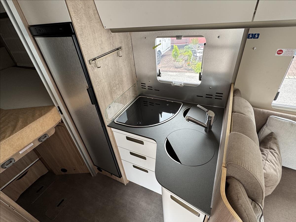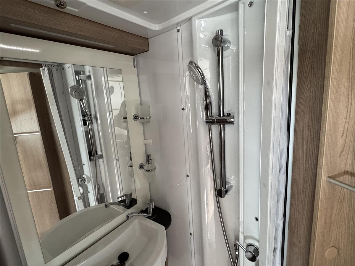 První majitel, Leasing možný, Možné financování vozidla., Zadní podélné postele s úpravou na jednolůžko, velká koupelna s WC, dvojitá podlaha, lednice s mrazákem 12/230V/plyn, DuoControl, solární panel 2x200W s regulátorem, TV 24', nástavbová klimatizace Dometic, přídavné zámky Heos, přídavné zadní měchy, nosičš kol v garáži, kotevní lišta v garáži, multimédium ALpine 9' se zobrazením kamery a zrcadlením telefonů, naftové topení Truma Combi 6DE ... Celková hmotnost 3500kg, provozní: 3196kg ... Jízda pro 4 osoby ... Spaní pro 2/3 osoby