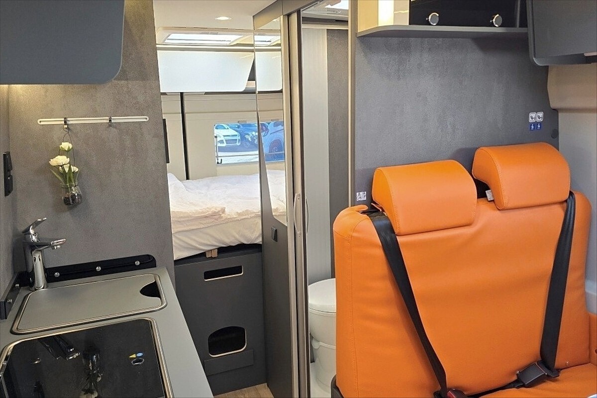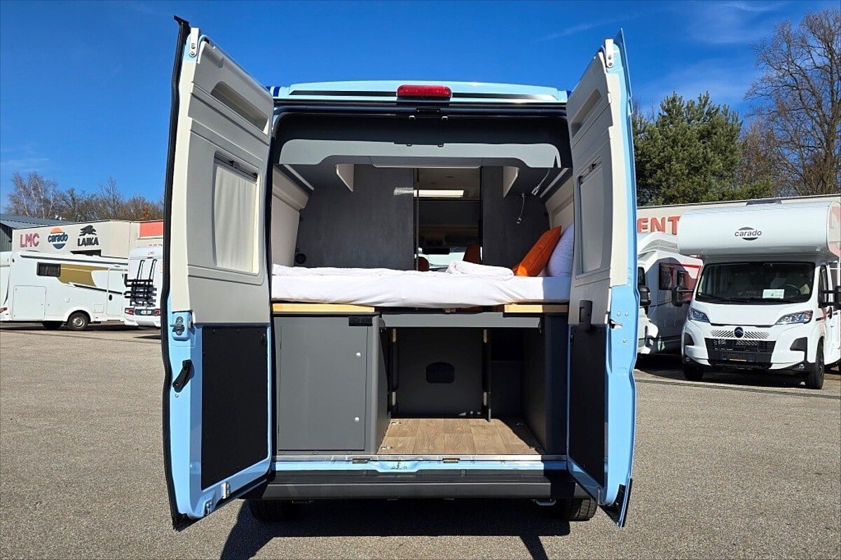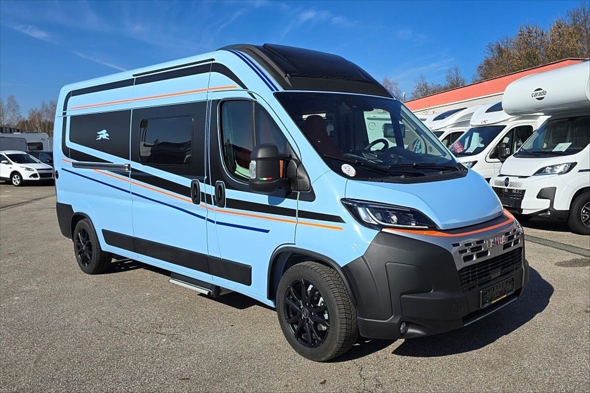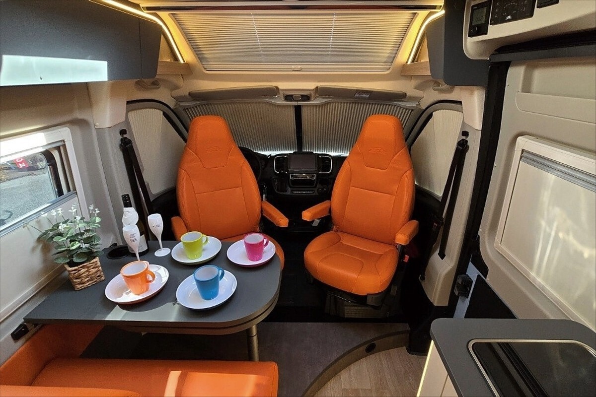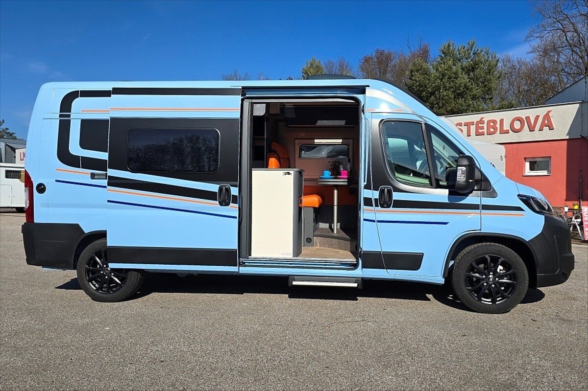 Leasing možný, Možné financování vozidla., SPECIÁLNÍ LIMITOVANÁ EDICE - Kosmo Supremo Azzurro Capri ..... Další výbava: 18' černá litá kola, oranžové čalounění NOTO, zadní příčná postel, kompresorová lednice s mrazákem, multimédium Pioneer 9', indukční nabíjení mobilního telefonu, digitální přístrojová deska, elektronická ruční brda, izolovaná a vyhřívaná odpadní nádrž, bezpečnostní rámová okna, všechna okna se zatemněním a moskytiérou, dveřní moskytiéra, přední zatemnění REMIS, nástupní el. schůdek, naftové topení TRUMA Combi 6D, velká koupelna s otočným panelem, panoramatické střešní okno .... Celková délka: 599cm, výška: 265cm a šířka 215cm ... Celková hmotnost 3500kg, provozní: 2978kg .... VOZIDLO SKLADEM