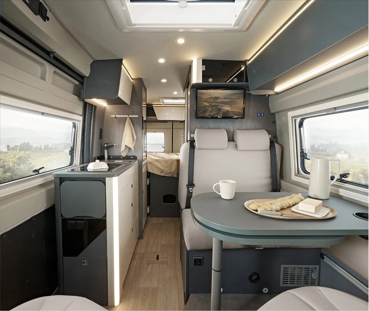 První majitel, Leasing možný, Možné financování vozidla., SPECIÁLNÍ LIMITOVANÁ EDICE - Kosmo Supremo Azzurro Capri ..... Další výbava: 18' černá litá kola, oranžové čalounění NOTO, zadní příčná postel, kompresorová lednice s mrazákem, multimédium Pioneer 9', indukční nabíjení mobilního telefonu, digitální přístrojová deska, elektronická ruční brda, izolovaná a vyhřívaná odpadní nádrž, bezpečnostní rámová okna, všechna okna se zatemněním a moskytiérou, dveřní moskytiéra, přední zatemnění REMIS, nástupní el. schůdek, naftové topení TRUMA Combi 6D