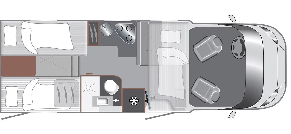 První majitel, Leasing možný, Možné financování vozidla., Zadní podélné postele s možností úpravy na jednolůžko, spoluštěcí postel, velká lednice s mrazákem, koberec v kabině i obytné části, teplovodní podlahové vytápění (v kombinaci s recirkulačním vytápěním), nádrž na odpadní vodu izolovaná a automaticky vyhřívaná, digitální ovládací panel pro vytápění, DuoControl s Crash Sensorem, ice-ex a vzdálený displej, topení Truma Combi 6 kW s 10 l bojlerem, recirkulací, digitálním ovládacím panelem a elektrickou topnou patronou 1, 8 kW, asistent nouzového brzdění s detekcí chodců, dešťový a světelný senzor, asistent pro jízdu v jízdním pruhu, rozpoznávání dopravních značek, inteligentní asistent rychlosti, detekce únavy řidiče, zatemnění kabiny Remis ... Celková délka: 699cm, výška: 279cm, šířka: 232cm ... Celková hmotnost: 4500kg, provozní: 3041kg.... Jízda pro 4 osoby, spaní pro 3/4 osoby ... VOZIDLO SKLADEM - TOP CENA