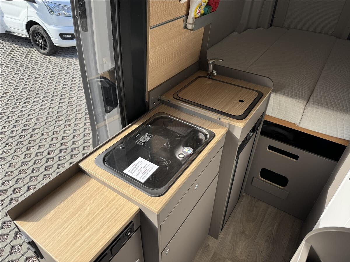 První majitel, Leasing možný, Možné financování vozidla., Zadní příčné postele, sezení rozložitelné na dětské lůžko, nosič 2 kol, všechna okna se zatemněním a moskytiérou, dveřní moskytiéra, topení Truma Combi, izolovaná a vyhřívaná odpadní nádrž, měnič napětí 600W, DuoControl, zatemňovací systém Remis, lednice s mrazákem .... Celková hmotnost 3500kg, provozní: 2922kg, Celková délka: 598cm, výška: 284cm, šířka: 212cm ... Spaní pro 2/3 osoby, jízda pro 4 osoby