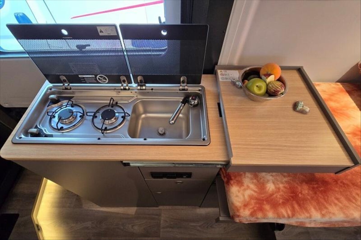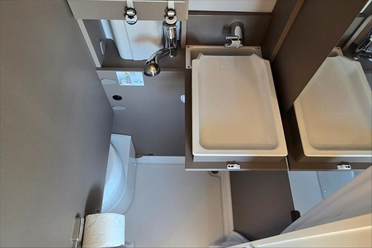 První majitel, Leasing možný, Možné financování vozidla., Zadní podélné lůžka s úpravou na jednolůžko+ sezení rozložitelné na dětské lůžko, kompresorová lednice, měnič napětí 1200W, solární panel 200Ah, střešní ventilátor MaxFann, naftové topení TRUMA Combi 6D, vyhřívaná odpadní nádrž, všechna okna se zatemněním a moskytiérou, dveřní moskytiéra .... Celková hmotnost 3500kg, provozní: 2838kg ... Celková délka: 599cm, výška: 284cm a šířka 206cm