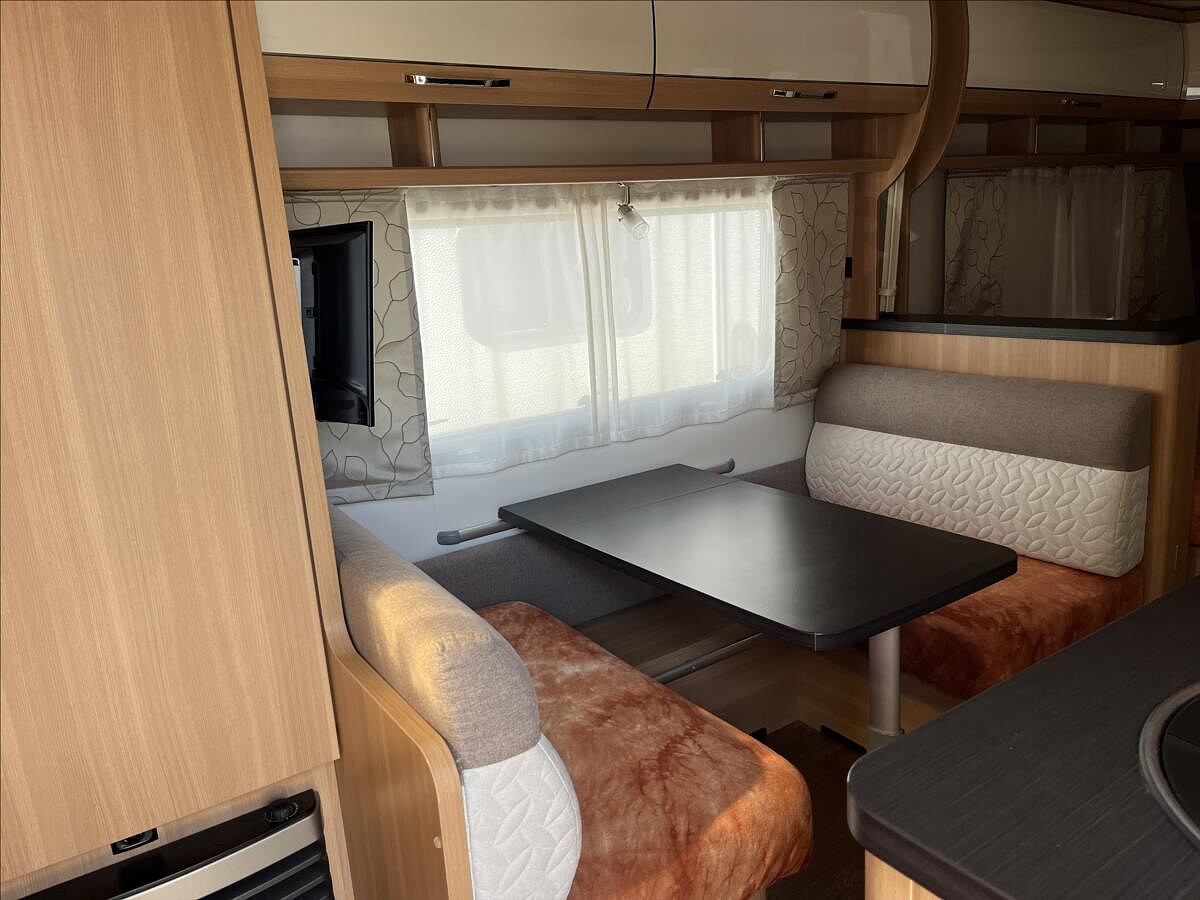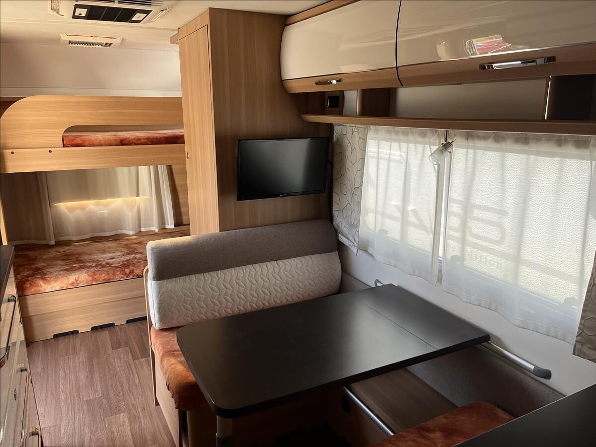 První majitel, Leasing možný, Možné financování vozidla., Navýšení hmotnosti na 1700 kg, nástavbová klimatizace Dometic, AL-KO podvozek, AL-KO Big Foots, AKS bezpečnostní spojovací zařízení, 141L automatická lednice, el. pomocné topení 230V, přípojka tlakové vody City Anschluss, TV 22'' s DVB-T anténou, boční stěny z hladkého plechu, dekorační polštářky, nádrž čerstvé vody 76L, posuvné kuchyňské okno, DuoControl + crash ventily, Autarkie Paket s 12V rozfukem, sprchový Paket, Exklusiv Paket, Luxus Paket, Hasicí přístroj, Markýza ..... Celková hmotnost 1700kg, provozní 1381kg.... Celková délka: 785cm, výška: 258cm, šířka: 232cm ... spaní pro 6 osob