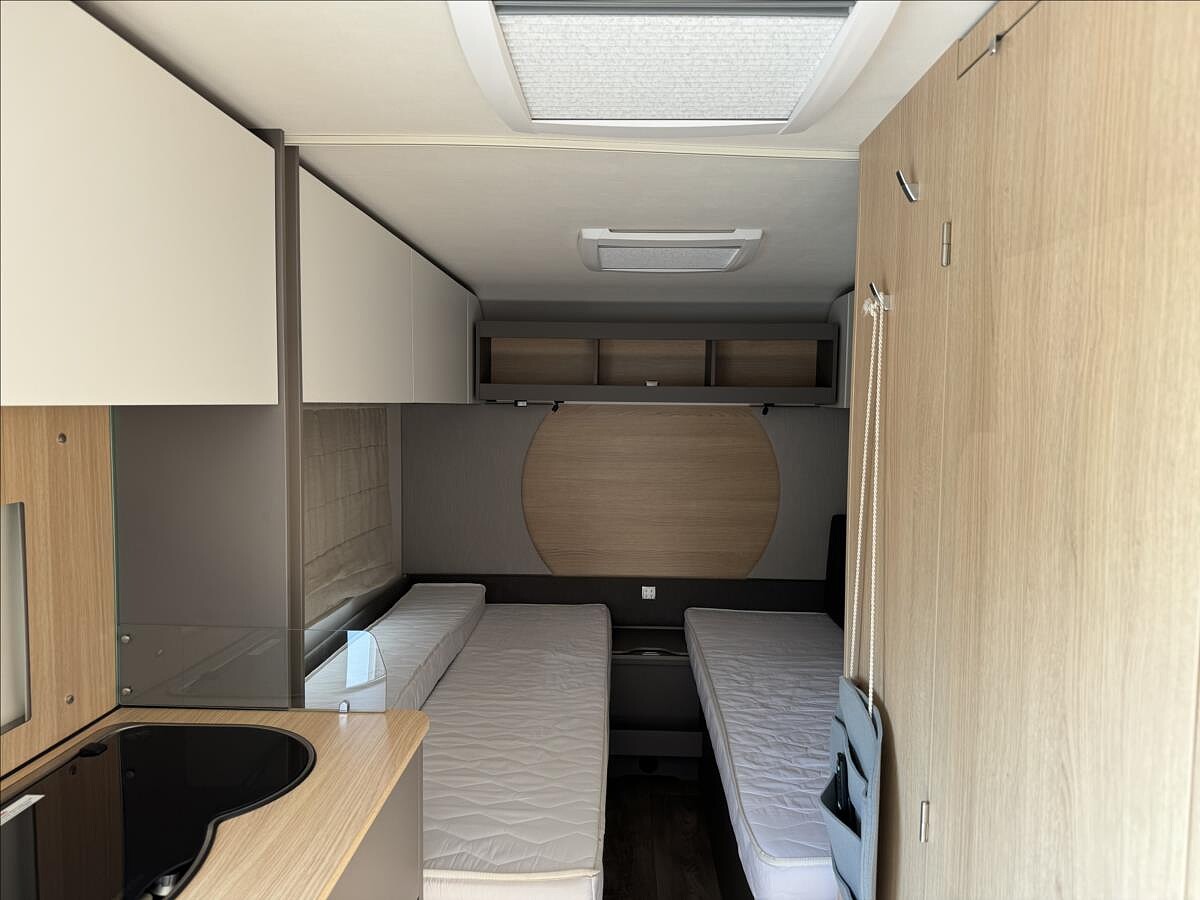 První majitel, Leasing možný, Možné financování vozidla., Zadní příčná postel+ rozložitelné sezení, plynové topení Truma, 12V paket + nástavbová baterie, solární panel 190Ah, el. ohřev vody Therme, lednice s mrazákem, nádrž na čistou vodu, DuoControl, sprchový poaket s přípojkou na tlakovou vodu, NÁSTAVBOVÁ KLIMATIZACE .... Celková hmotnost 1700kg ... Spaní pro 3 až 4 osoby