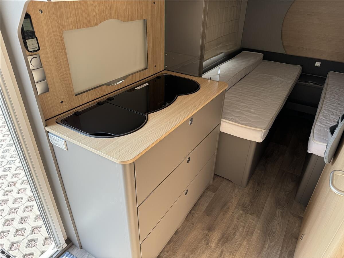 První majitel, Leasing možný, Možné financování vozidla., Zadní příčná postel+ rozložitelné sezení, plynové topení Truma, 12V paket + nástavbová baterie, solární panel 190Ah, el. ohřev vody Therme, lednice s mrazákem, nádrž na čistou vodu, DuoControl, sprchový poaket s přípojkou na tlakovou vodu, NÁSTAVBOVÁ KLIMATIZACE .... Celková hmotnost 1700kg ... Spaní pro 3 až 4 osoby