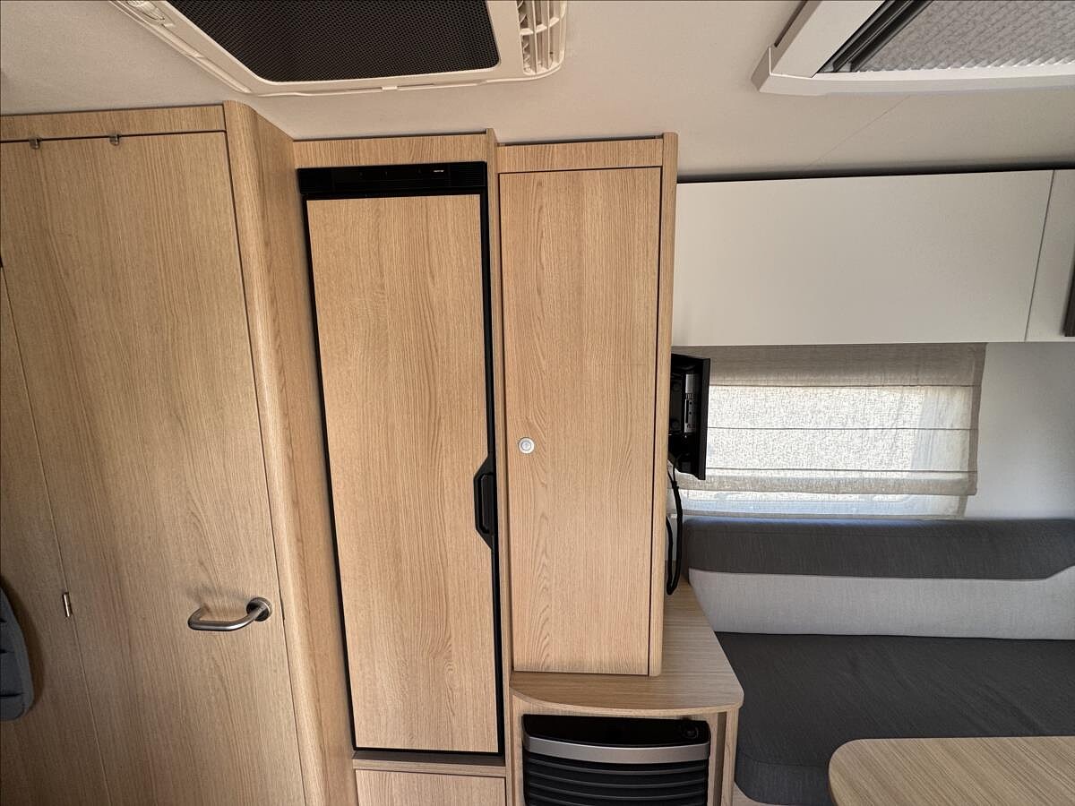První majitel, Leasing možný, Možné financování vozidla., Zadní podélné postele s výsuvným roštem + rozkládací sezení do U, nástavbová klimatizace Dometic, TV + DVBT2 anténa, solární panel + LiFePo baterie, všechna okna se zatemněním a moskytiérou, dveřní moskytiéra, topení Truma s rozfukem, boiler na teplou vodu, DuoControl, podvozek ALKO, stabilizace nápravy, střecha GFK, velká lednice s mrazákem .... Celková hmotnost 1800kg, provozní: 1337kg, Spaní i sezení pro 2-4 osoby .... Celková délka: 758cm, výška: 257cm, šířka: 232cm