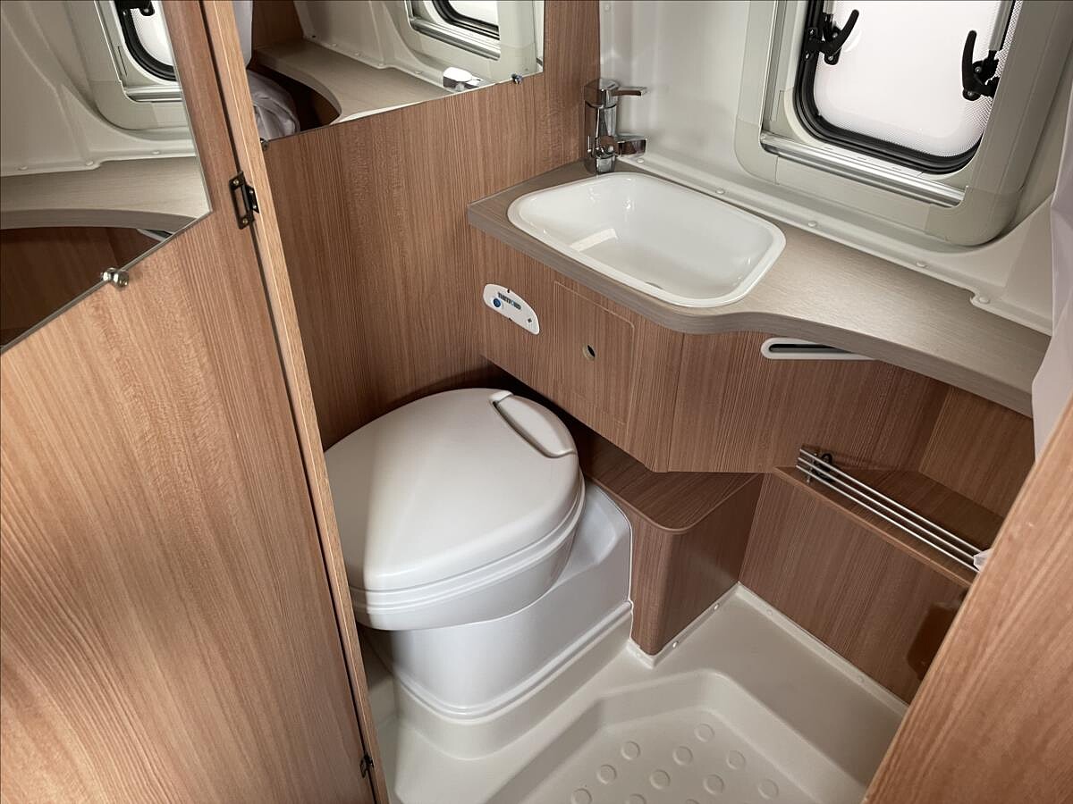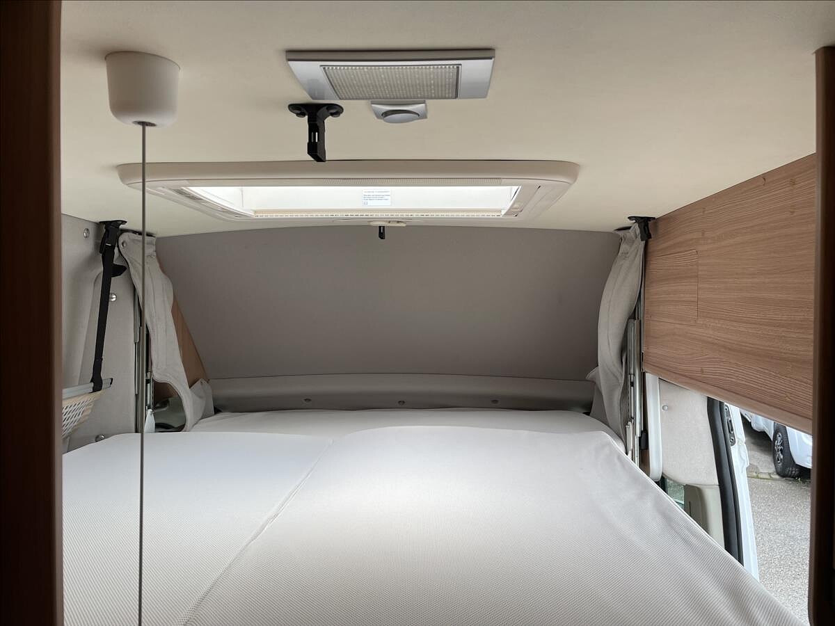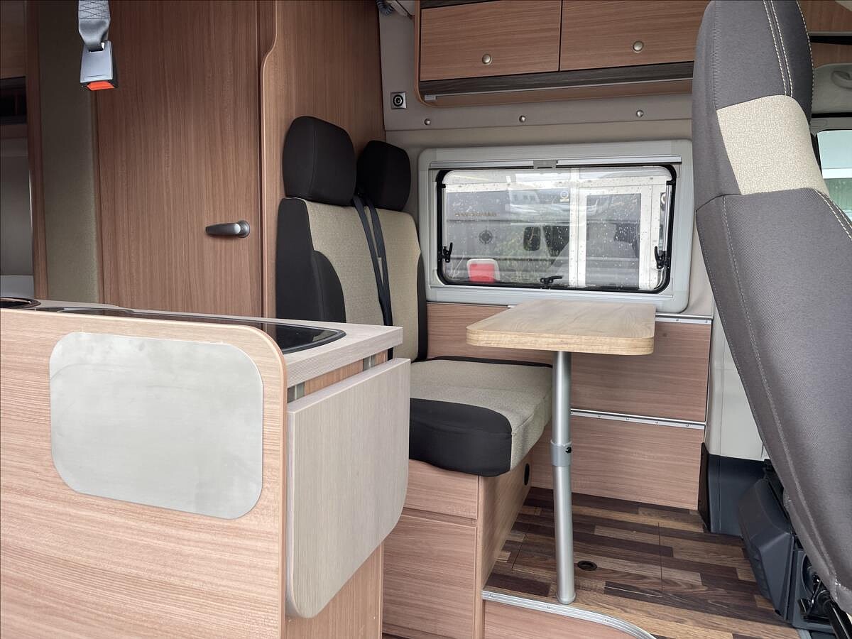 První majitel, Leasing možný, Možné financování vozidla., Elektricky spouštěcí postel - spaní až pro 4 osoby, lednice, 3 plotýnkový vařič, dřez, markýza, topení Truma, všechna okna s moskytiérou a zatemněním, dveřní moskytiéra atd......Celková hmotnost 3300kg, provozní 2910kg