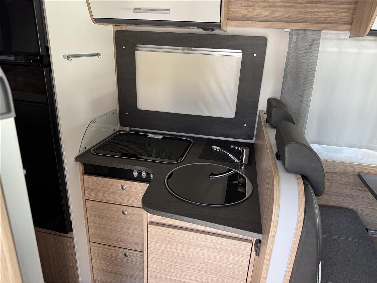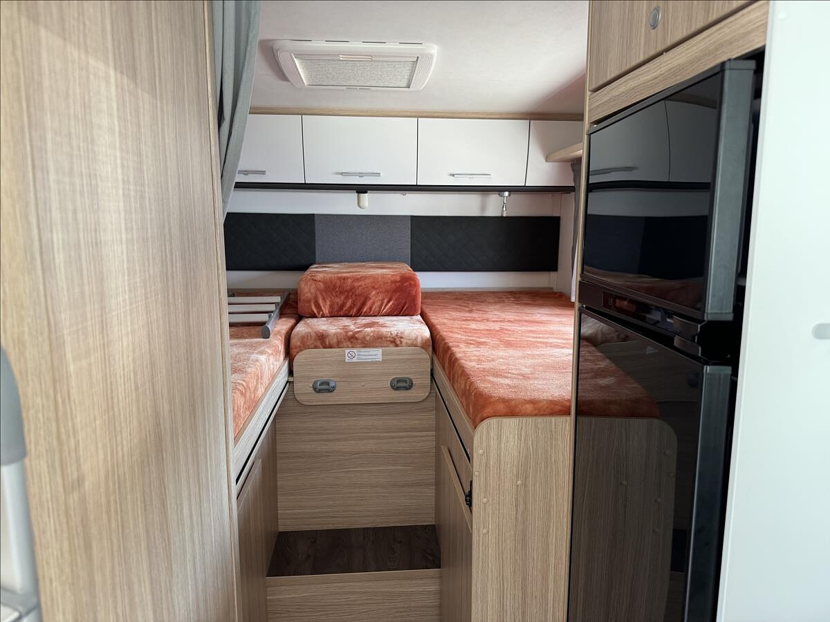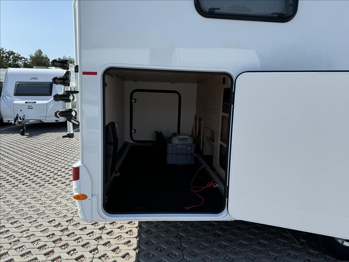 První majitel, Leasing možný, Možné financování vozidla., Zadní podélné postele s výsuvným roštem (úprava na jednolůžko), spouštěcí postel, velká lednice s odděleným mrazákem 12/230V/plyn, všechna okna se zatemněním a moskytiérou, dveřní moskytiéra, trezor, DuoControl, el. vyhřívaná podlaha, izolovaná a vyhřívaná odpadní nádrž, 2DIN rádio se zobrazením kamery, nosič kol, atd... Celková hmotnost: 3500kg, provozní: 3003kg ... Celková délka: 735kg, výška: 293cm, šířka: 232cm .... Spaní pro 4/5 osob, jízda pro 4 osoby ...